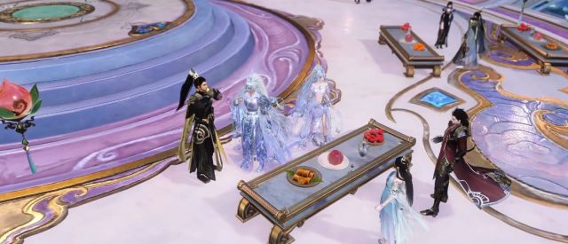 还有线上这场氛围感拉满的天宫瑶池家宴!每一位少侠,都能登上天宫,抛开所有烦恼,过上无拘无束的神仙日子!灵骥无羁,不困劳尘,脚下是缭绕的仙雾,眼前是绝美的瑶池盛景,身边还有各路少侠相伴,品一口香甜蟠桃,沾一沾新年福气,再点上一盏花灯,看漫天烟火绽放,绚烂的星光编织出星宿图谱,随手一拍都是绝美大片,身穿灵骥驰春信时装的少侠,更是把这场烟火盛宴衬得愈发惊艳,氛围感直接拉满。